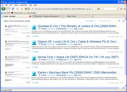 There are apparently already thousands of individual iCyte users, attracted by the ability to store anything from academic, legal or corporate research to – well, anything which interests you really. My screen-shot shows the beginnings of a collection of case reports.
