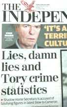 Apart from that, they have two main marketing problems – an unforgivably casual way with statistics and their failure to control the throwbacks in the party who have not got the message that things have moved on. As to statistics, Brown and Labour were caught lying three times in a few days (Brown admitted to Parliament that he had falsified Iraq spending figures given to Chilcot, was publicly corrected by the Office of National Statistics on net immigration, and was forced by the Advertising Standards Authority to withdraw a poster on crime statistics). Cameron has correctly identified that voter antipathy towards politicians has overtaken mere apathy, and that political dishonesty and the assumption that “they are all as bad as each other” are major factors contributing to that antipathy.