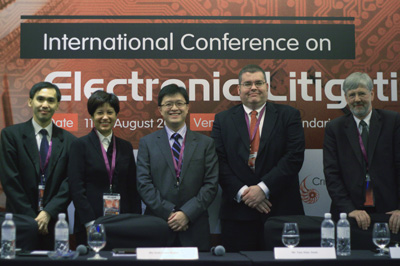 I took part in a panel called Electronic Discovery Law and Practice in Singapore, US & UK led by Senior Assistant Registrar Yeong Zee Kin of the Supreme Court of Singapore, in company with Indranee Rajah, SC of Drew & Napier LL, Tan Hee Joek of Tan See Swan & Co and Brad Mixner. The mixture of a judge, local lawyers, a services provider and me allowed us to look at a range of topics from different angles, quite apart from the involvement of three different jurisdictions. Brad Mixner’s blog includes a photograph of us which I reproduce here with thanks.