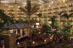 The Gaylord Opryland Resort covers 56 acres; it has 2881 guest rooms, 220 suites, an atrium 150 foot high and 4.5 acres in extent plus a second atrium of an acre which comfortably swallows two waterfalls, tropical gardens, a restaurant and a bar; the resort has 15 restaurants in all, a river, and several hundred thousand square feet of exhibit hall and conference facilities. There were people whom I knew to be there amongst the 1200 registered delegates at ILTA whom I did not see at all.