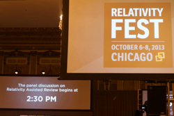 Relativity Fest is a large annual gathering of Relativity resellers, users and would-be users who assemble in Chicago each year for a mixture of hands-on training, a glimpse of new developments and road maps, and a solid series of educational talks and sessions which are either about the use of Relativity or about the context in which it is used. I was there to take part in the predictive coding panel which closed the conference.
