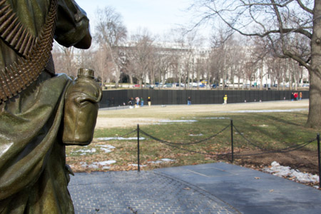 Beyond that lies the Vietnam War Memorial, two black walls inset with the names of every US servicemen who died.