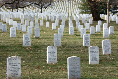 Beyond them, the Lincoln Memorial. Then there is the Arlington Military Cemetery, acre after acre of tombstones and memorials, some in regular lines stretching nearly as far as the eye can see, others scattered less formally.