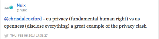 I took part in a panel alongside Equivio and organised by Lighthouse about what lawyers must think about when facing an eDiscovery exercise and how they should choose the technology they need to get the job done. I did another one with Nuix and FTI on data privacy and how a properly-planned information governance programme can help mitigate the effects of personally-identifiable information which lurks in every company’s data. Important subjects both, and interesting ones to talk about in such company.