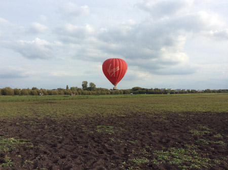 Here is another example taken on the same field a few weeks ago. It is two out of a series of eight photographs of a Virgin balloon which, when I first saw it, looked likely to come down, with all its passengers, on the main railway line to Birmingham (you can find the whole sequence here).