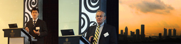 The reference to “quinquennial” derives from the fact that it is five years since Singapore launched its Practice Direction PD 3 of 2009 which began the formalisation of procedures relating to electronic discovery. I was there as it began, co-chairing an eDiscovery conference in October 2009 with the late Browning Marean. The first two photographs below show him and Yeong Zee Kin speaking at that event. The third is one of the Singapore skyline showing what is now the Marina Bay Sands hotel under construction. Like the hotel, the practice direction has since become part of the scenery