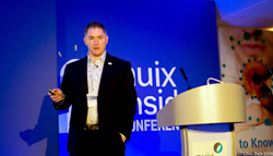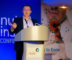 CTO Steven Stewart took up the theme. His focus was on tying computers back to individuals and on telling stories with data. He ranged from Kevin Bacon and the 6 Degrees of Separation to LinkedIn invitations from people you don’t know. It all comes back to the Nuix Engine and “the ones and zeros” he said.