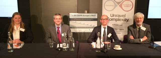 The session was called Is the GDPR Europe’s wall? Walls are topical at the moment for one reason and another. The “wall” from our session title might be taken at face value as protection against misuse of our personal information. Rather cynically, perhaps, I suggested that the wall was something over which clients with valuable transatlantic work would scramble en route for Dublin if the UK did not get its house in order. The Information Commissioners Office is doing stalwart work to get us ready, with an astute mixture of information, positive inducement and the hint of threats. The government has more than enough on its hands as it bullies and blusters its way towards Brexit, and is plainly ignorant of the basics of data and its implications for privacy (see the Snoopers’ Charter for example). I suggested that it was down to people like those in the room to try and ensure that the UK measures up to EU standards by May 2018.