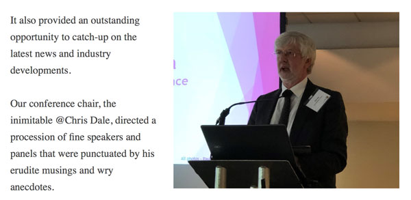 We need a new generation, not just to do the work but to carry out the messages to events like this. They in turn need the support of their firms or other organisations to encourage them to take on speaking engagements. Few people jump fully-formed into public speaking, especially on specialist or technical subjects, and we all benefit – the speakers themselves, their employers and the audiences – when knowledgable younger people get on their feet at events like these. The ones we heard at these events are themselves old hands by now. We need to be bringing on the generation after that.
