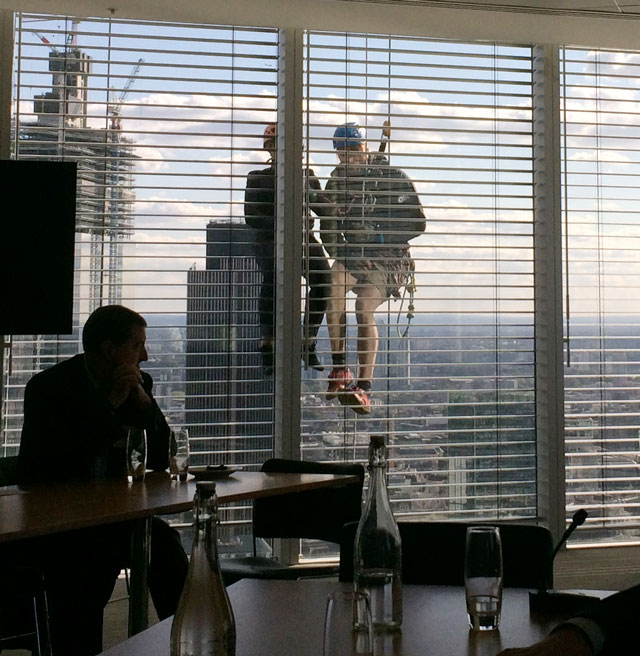 As we sat on the 32nd floor of Broadgate Tower for the Masters Conference last week, a series of people came past the window. Was there a metaphor here, I wondered, for lawyers’ adoption of technology? These people were brave; many of them were plainly nervous; they relied entirely on technology which they neither understood nor controlled; it was a hell of a long way to the bottom; the risks of failure were high. Yet on they went. Fortune favours the brave. The main difference, I decided, was that the abseilers had volunteered – they had a choice whether to take part or not. I don’t think the lawyers do.