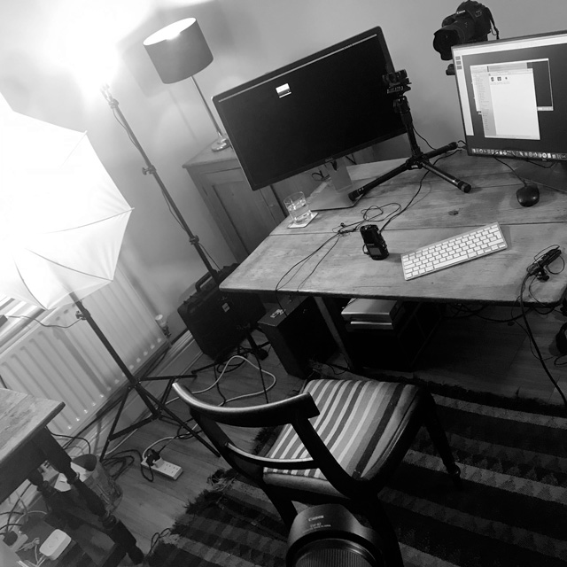It took us two-and-a-half hours to set it all up in my room, with three cameras, four lights, three audio devices and the requisite comms links.