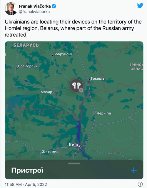 In addition, Ukrainians have been using device-tracking apps such as Apple’s Find My Phone to see where their connected devices have ended up.